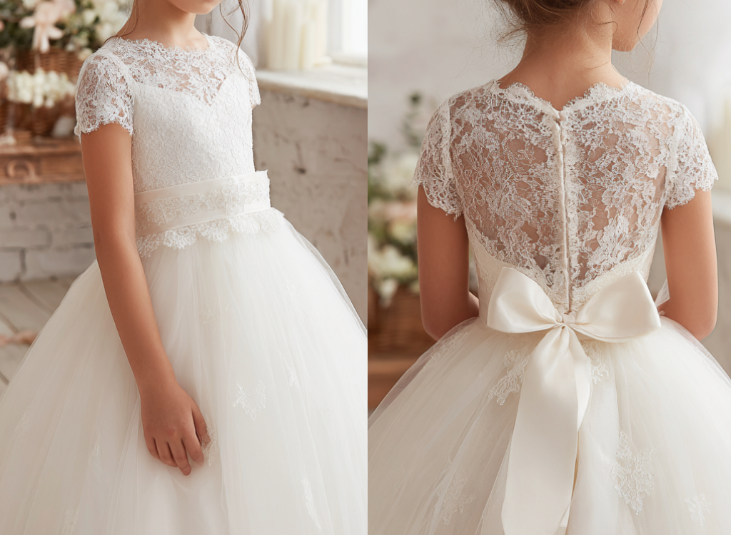 Ivory Full Length Flower Girl Dress Brithday Party Kids Skirt Princess Clothing W1-13