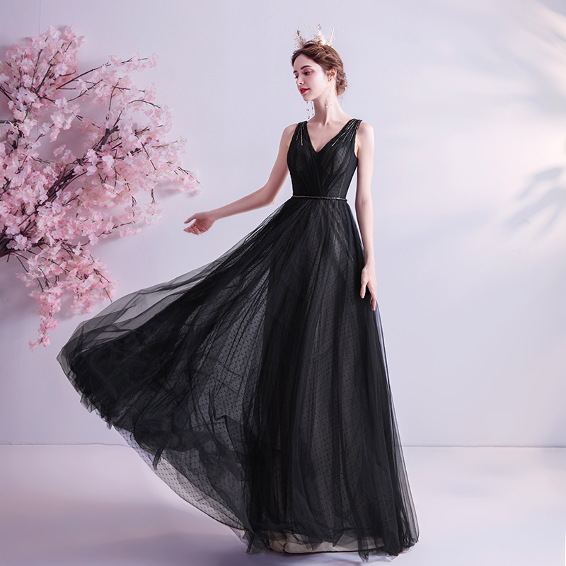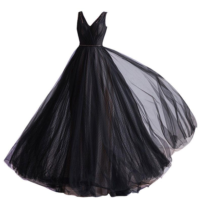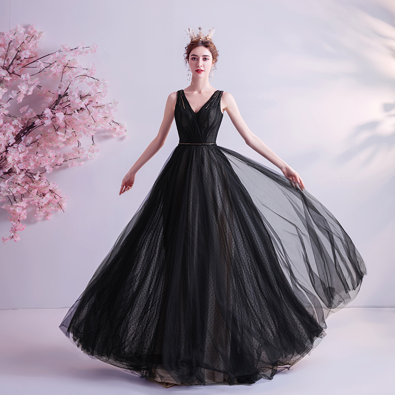 A Line Full Length Black Wedding Dress V Neck Lace Up Bridal Gown Formal Occasion Skirt Summer Style