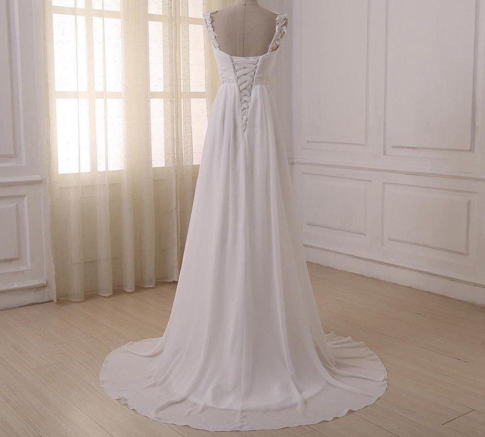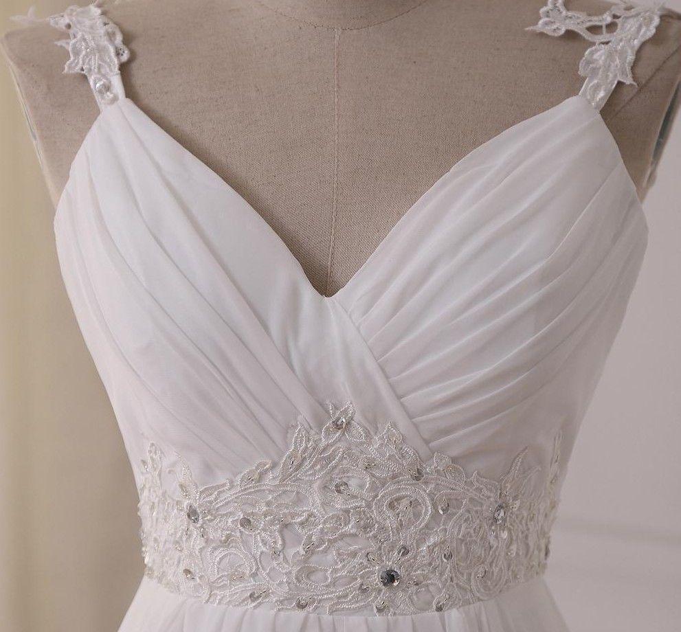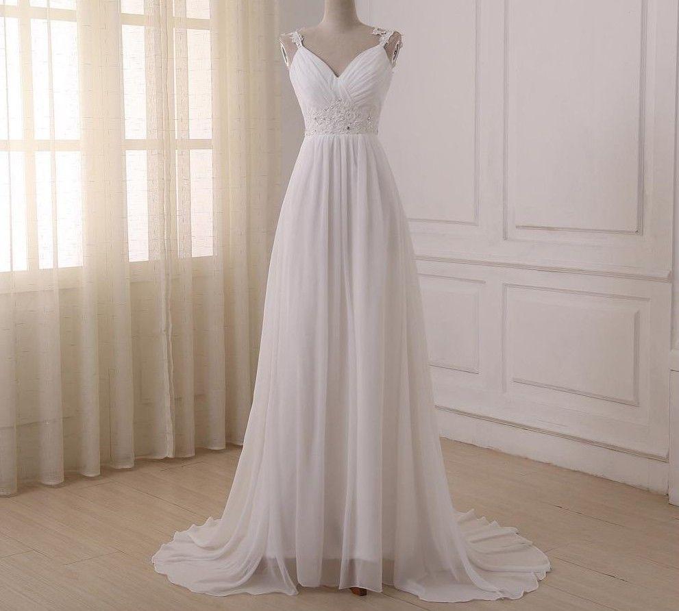 White Ivory V Neck Long Chiffon Beading Wedding Dresses Bridal Gowns Custom Made