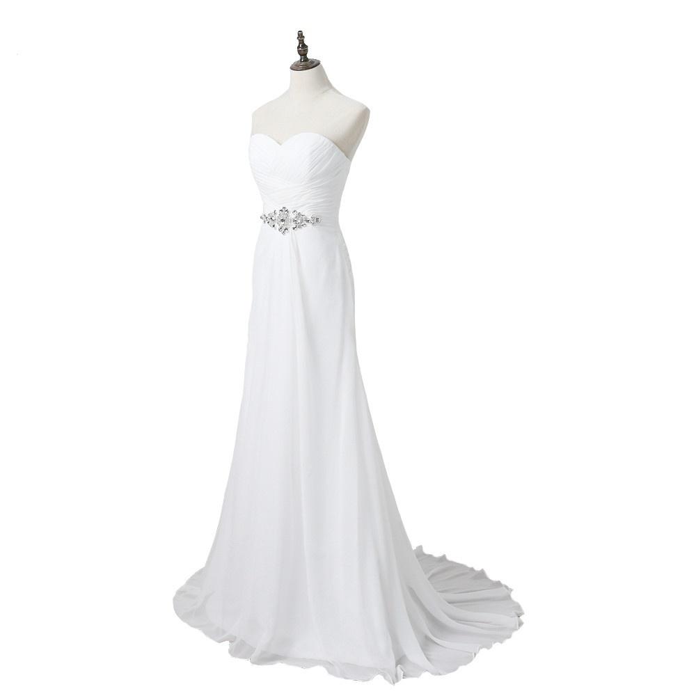 Chiffon Beach Wedding Dresses Sweetheart Sleeveless Pleats Body Plus Size Bridal Gowns with Crystals Belt For Wedding Occasion