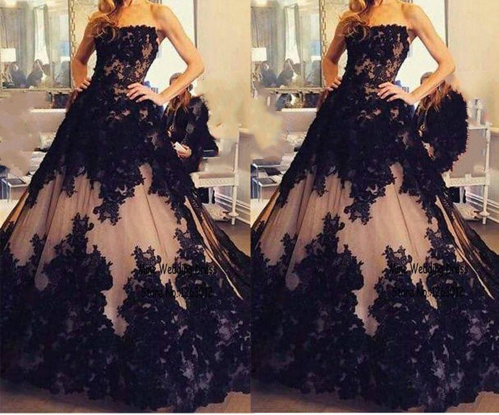 Gothic Black and Champagne Lace Applique Wedding Quinceanera Dresses Formal Ball Gowns Custom Plus Size