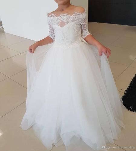 Short Sleeve Lace Wedding Girl Dress Flower Girl Dress Foraml Occasion Kids Clothing Princess Dress