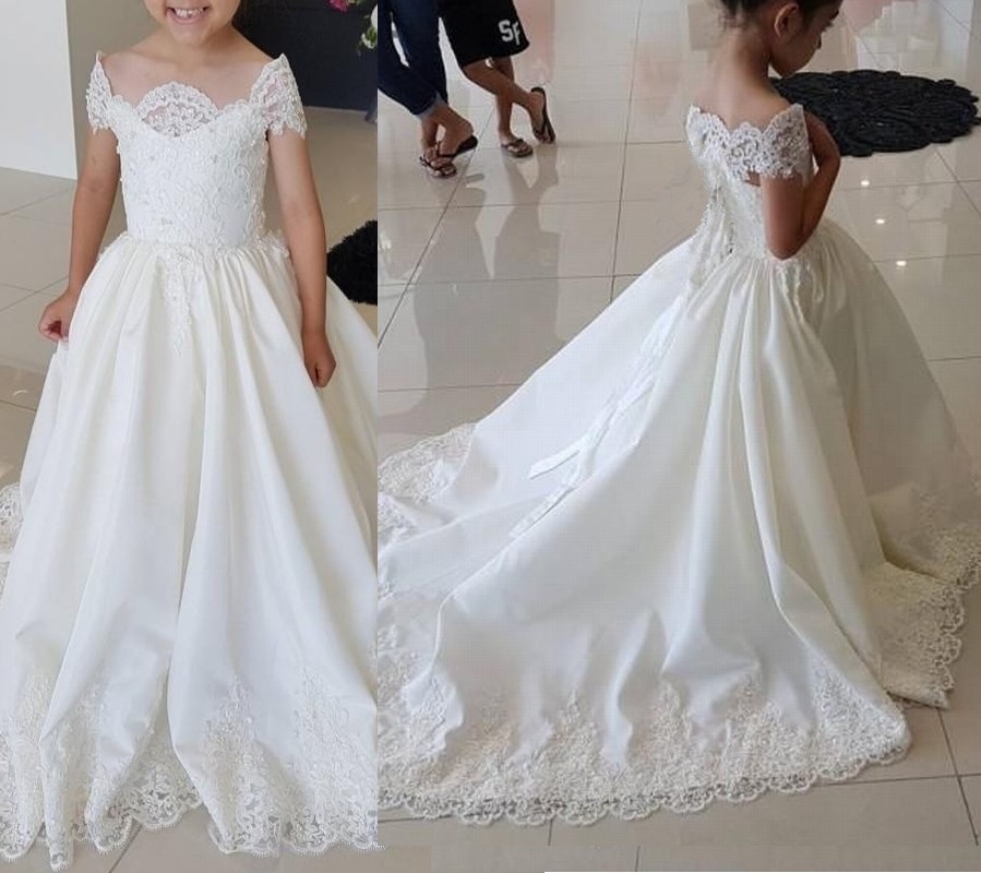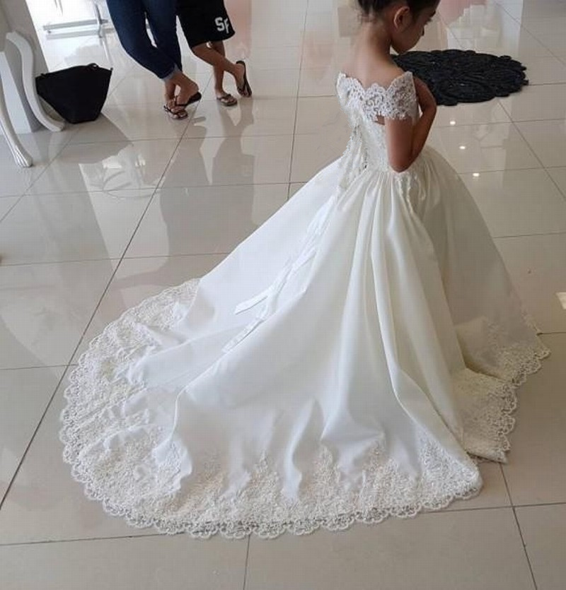 Lace Applique Cute Wedding Girl Dress Flower Girl Dress Foraml Occasion Kids Clothing Princess Dress