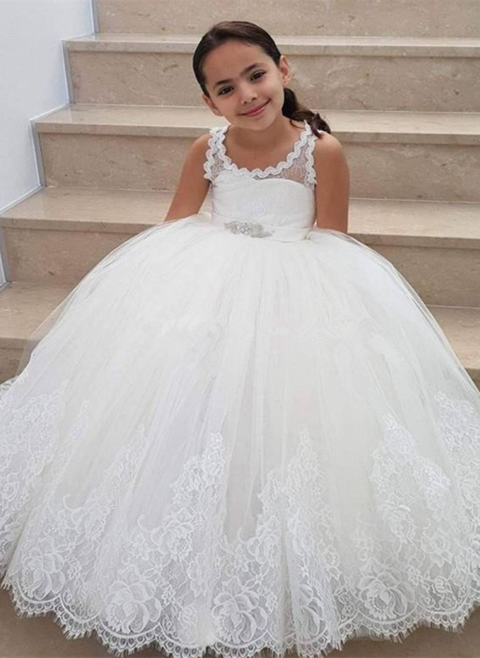Lace Applique Cute Wedding Girl Dress Flower Girl Dress Foraml Occasion Kids Clothing Princess Communion Dress