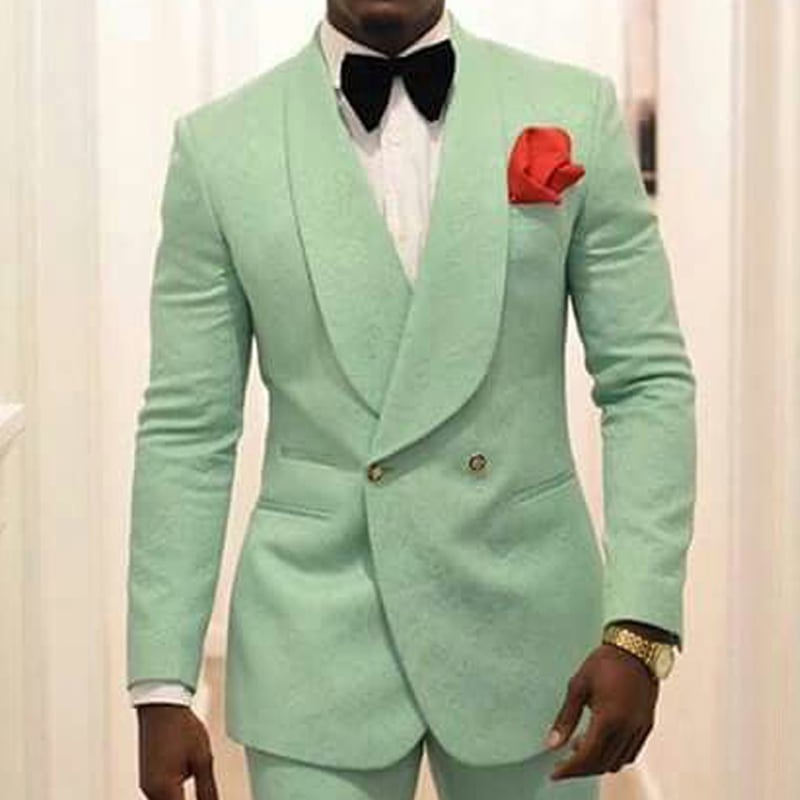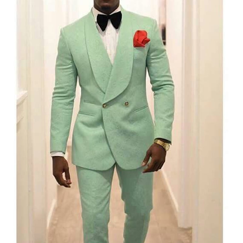 Mint Green Men Groom Tuxedos for Wedding Suit Shawl Lapel Two Piece Jacket Pants Formal Man Blazer Latest Style