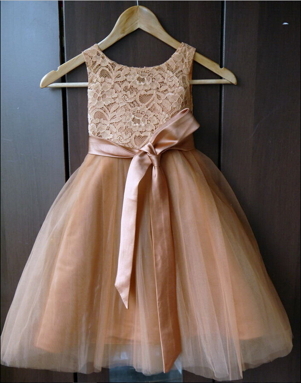 Lace New Little Girl Cute Ball Gown Lace Wedding Girl Dress Flower Girl Dress Foraml Occasion Kids Clothing with sash Princess Dr