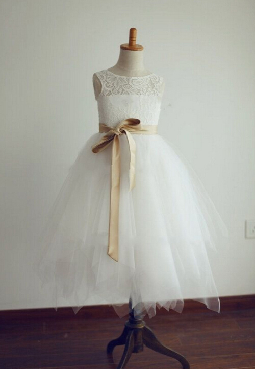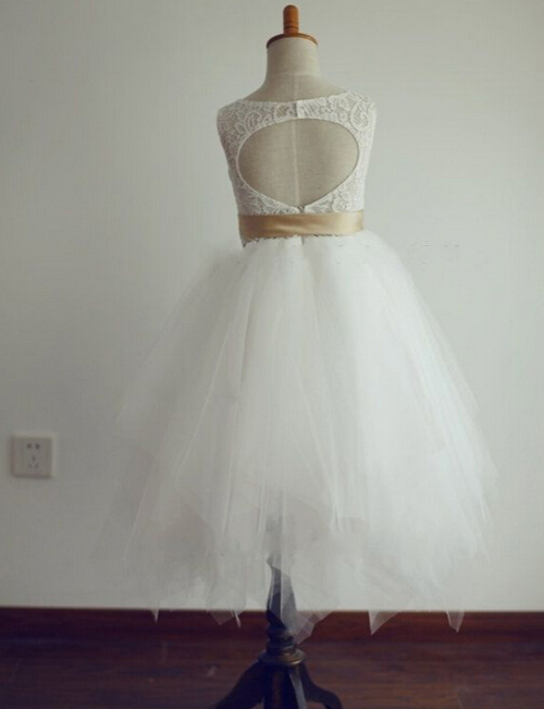 Lace New Little Girl Cute Ball Gown Lace Wedding Girl Dress Flower Girl Dress Foraml Occasion Kids Clothing with sash Princess Dr