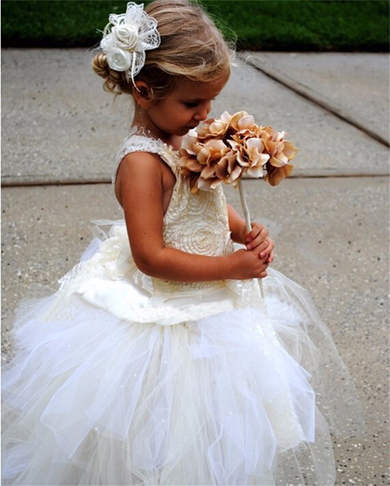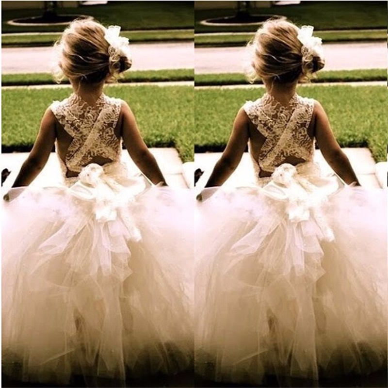 Tulle New Little Girl Cute Ball Gown Lace Wedding Girl Dress Flower Girl Dress Foraml Occasion Kids Clothing with sash Princess Dress