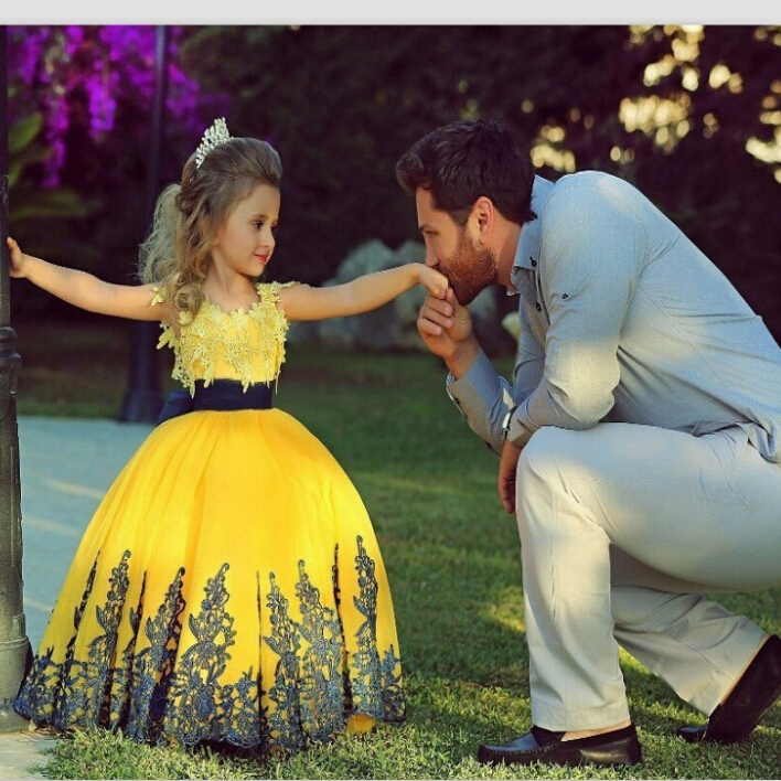 New Little Girl Cute Ball Gown Lace Wedding Girl Dress Flower Girl Dress Foraml Occasion Kids Clothing with sash Princess Dress