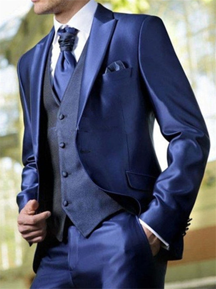 New Classic Men’s Suit Slim Fit Easculino Evening Suits For Men bright Blue tuxedos Party tuxedos Wedding