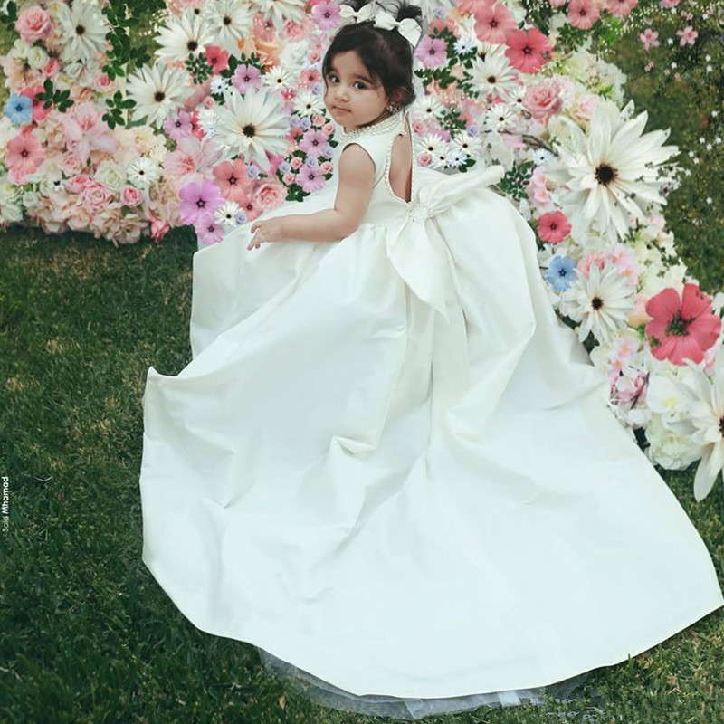 White Ivory Flower Girl Dresses For Wedding Sleeveless Beads Pearls First Communion Dresses Birthday Party Gowns