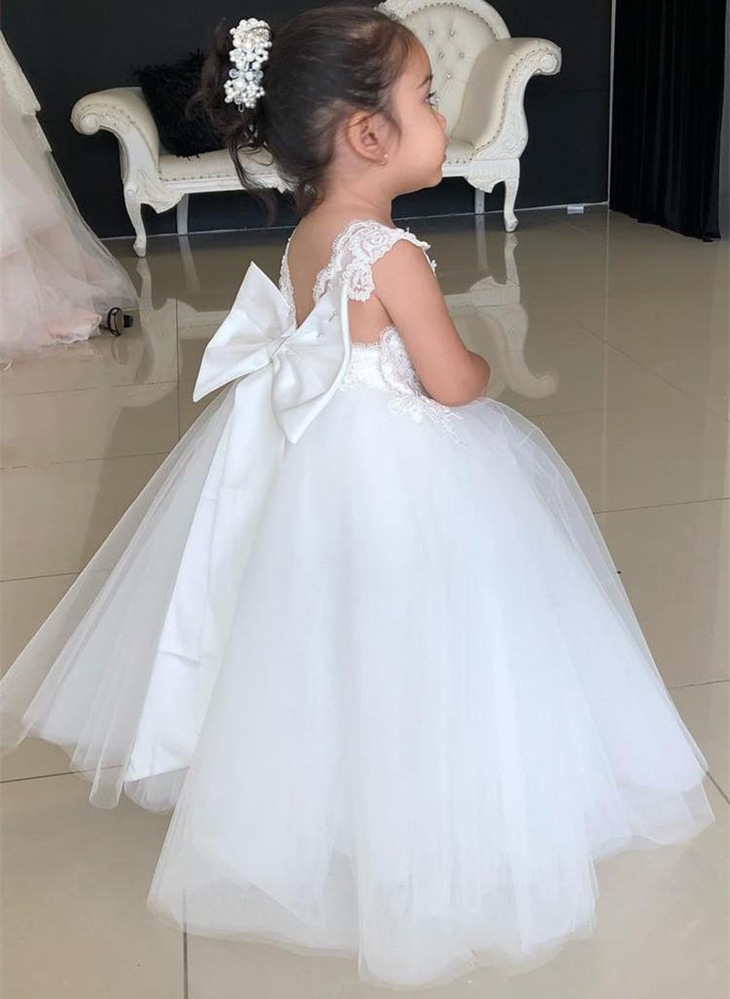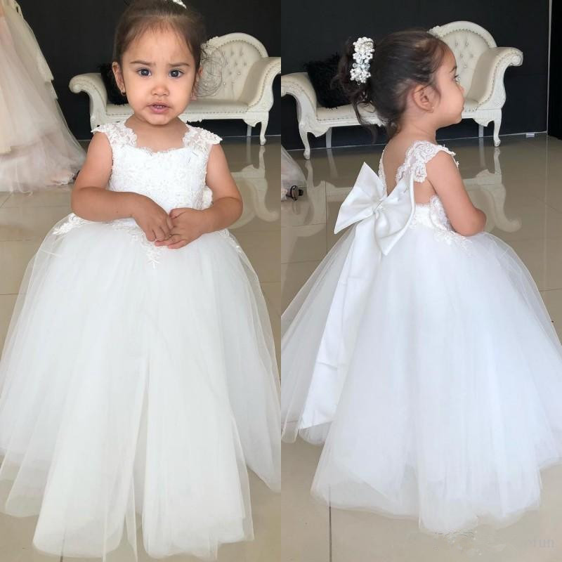 Lovely Princess Flower Girls Dresses Off Shoulder Tulle Hand Made Flowers Floor Length Birthday Girl Pageant Gowns