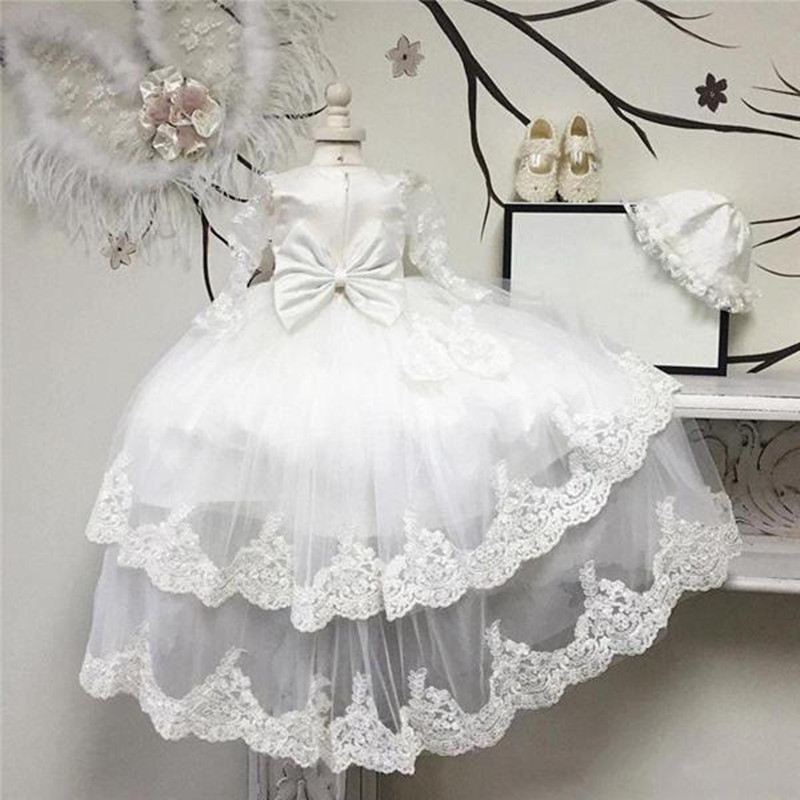 Long Sleeve Flower Girl Dresses A Line Jewel Lace Applique Girls Pageant Dresses With Tiered Skirts For Wedding Party Gown