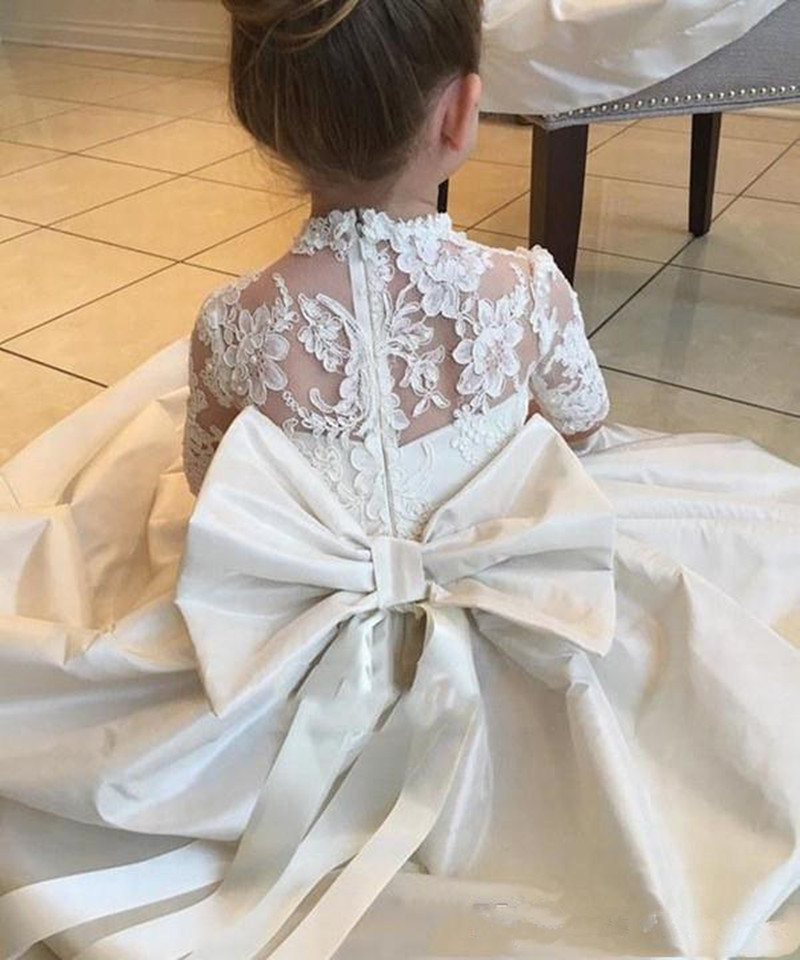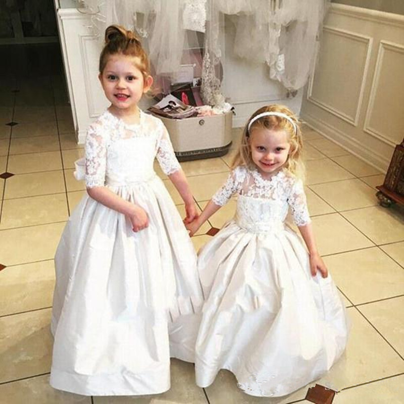 Flower Girl Dresses For Wedding Ball Gowns A Line Jewel Lace Satin Half Sleeve Birthday Party Girl Dresses