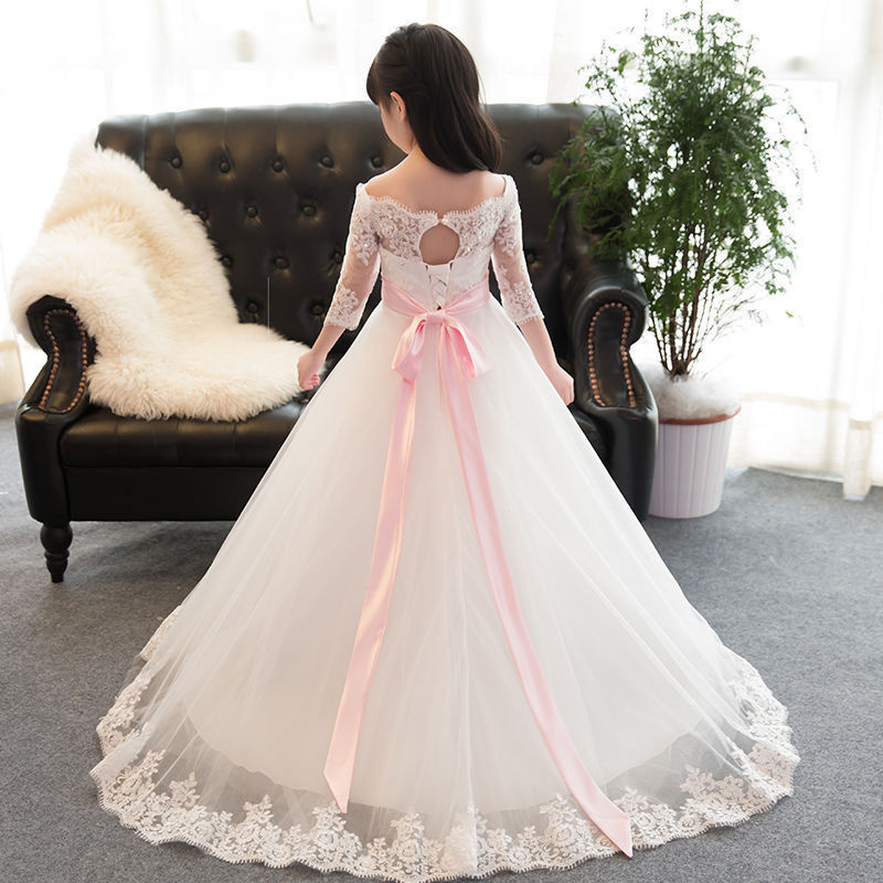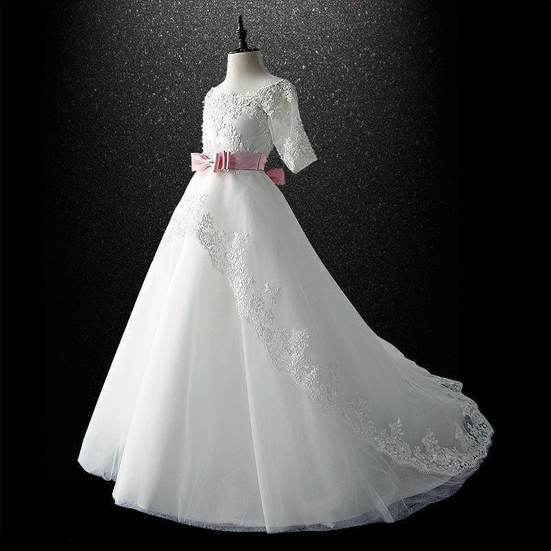 Pink Sash Flower Girl Dresses First Communion Party Prom Wedding Bridesmaid Princess 3/4 Sleeves Gown For Girls