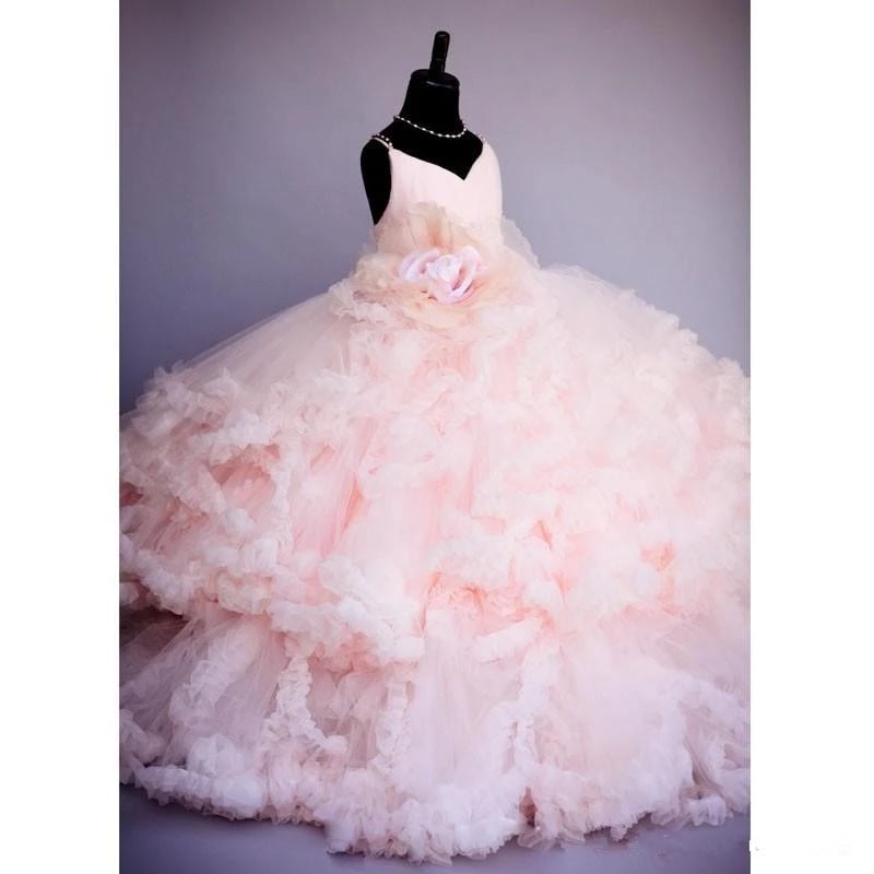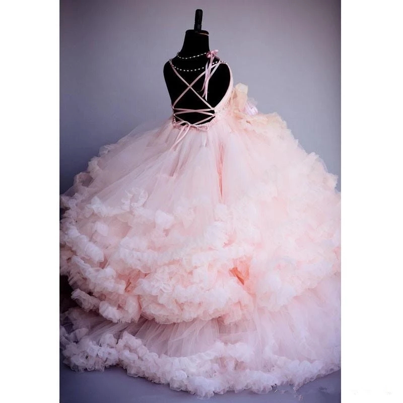 Pink New Cute Wedding Girl Dress Flower Girl Dress Foraml Occasion Kids Clothing Princess Brithday Dress