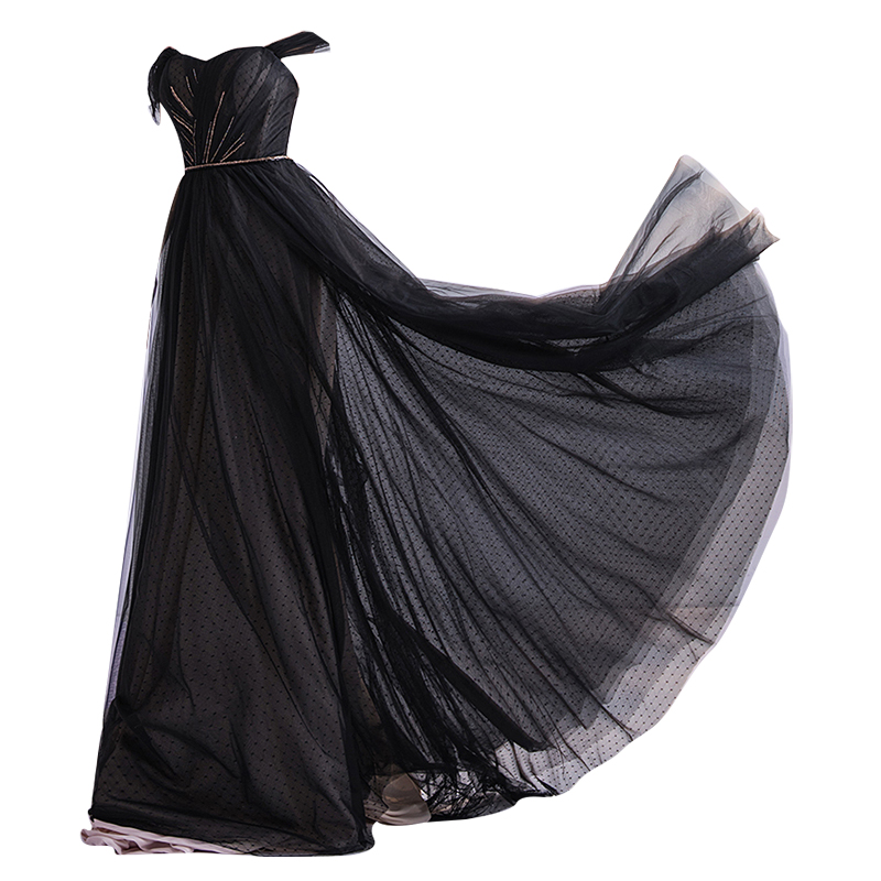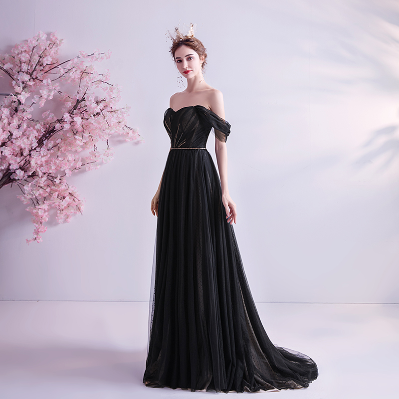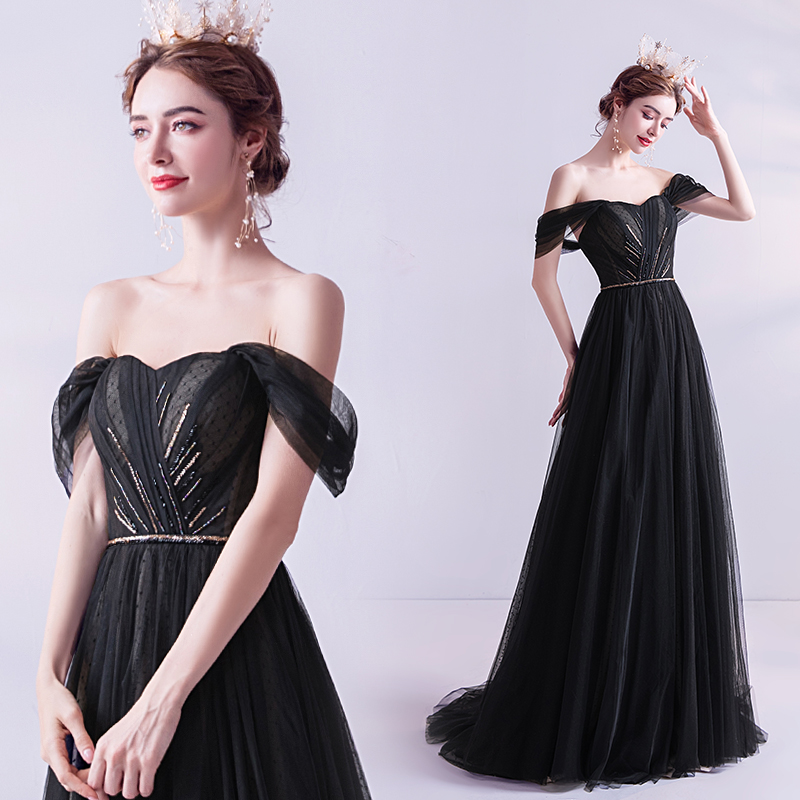 A Line Full Length Black Sexy Wedding Dress off shoulder Lace Up Bridal Gown Formal Party Occasion Skirt Fashion Style