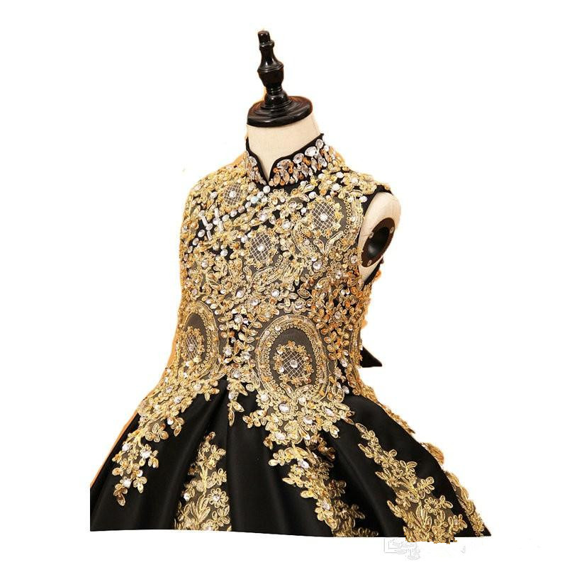 Gold and Black New Cute Wedding Girl Dress Flower Girl Dress Foraml Occasion Kids Clothing Princess Brithday Dress