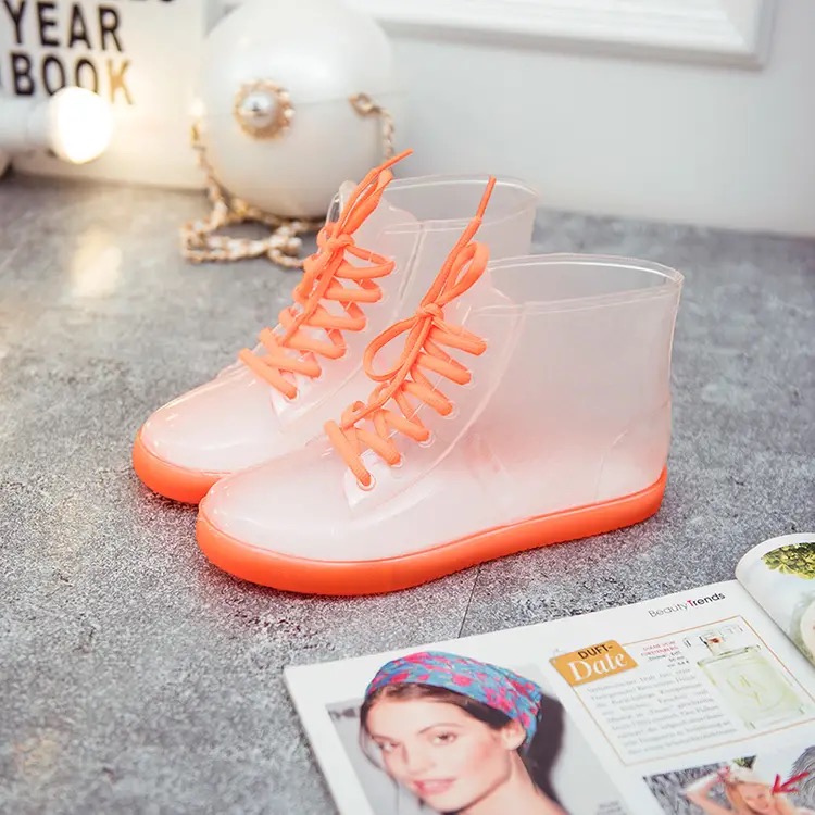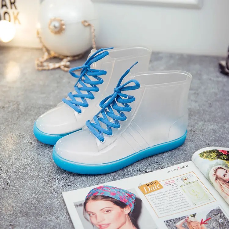 Fashion kawaii candy color rain boots Women Student Shoe Lace Up Cleats