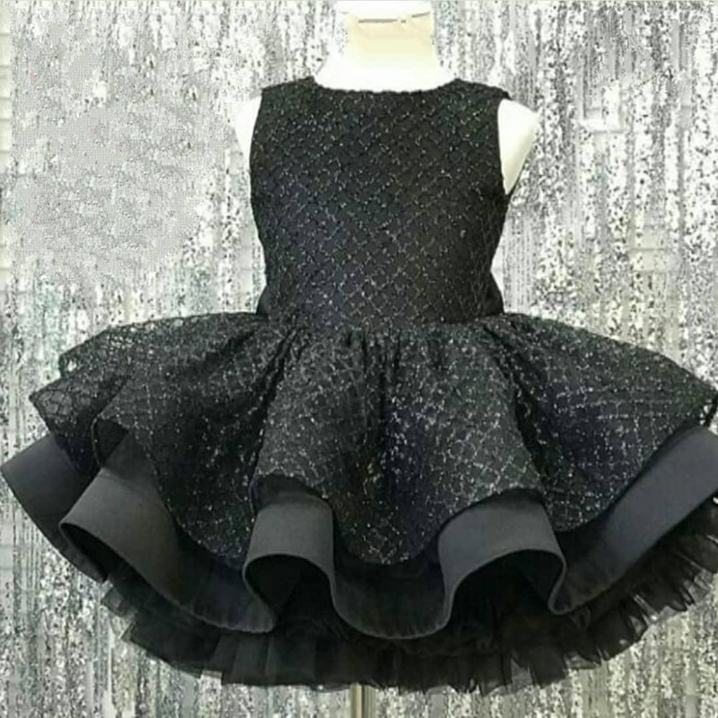 Black Sparkly Flower Girl Dresses Backless Knee Length Little Girl Wedding Gowns First Communion Pageant Kids Wears
