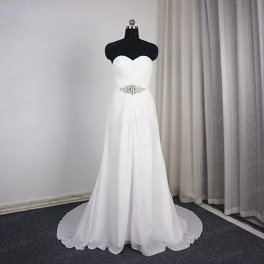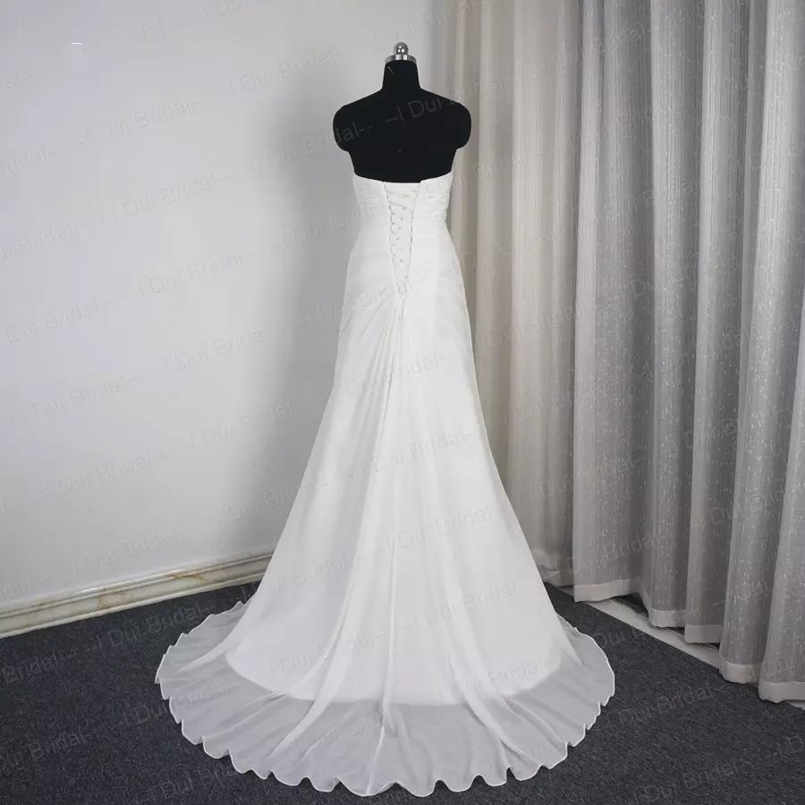 Strapless White Ivory Long Chiffon Wedding Dresses Bridal Gowns Custom Made