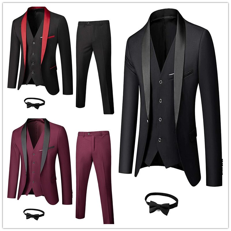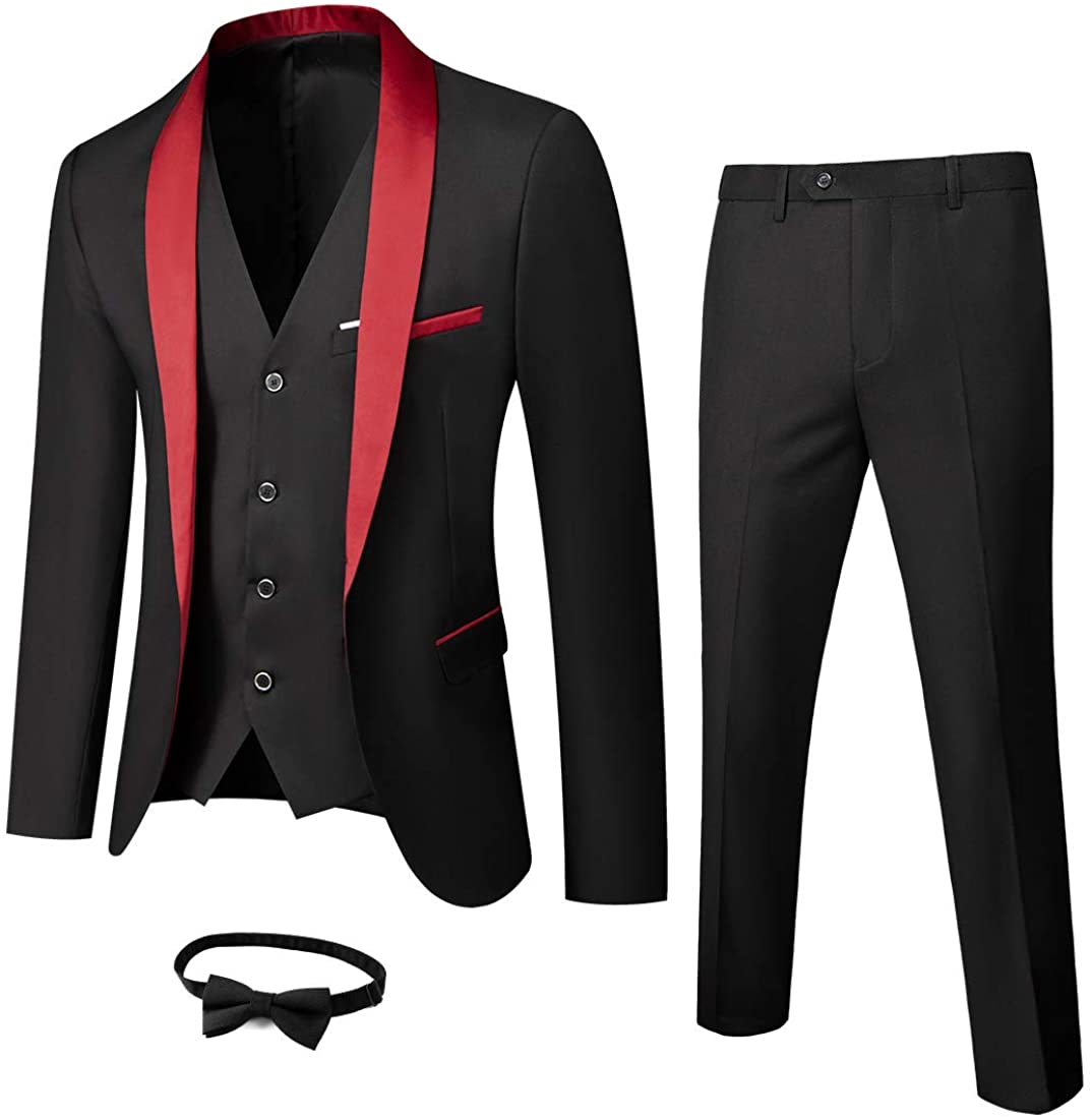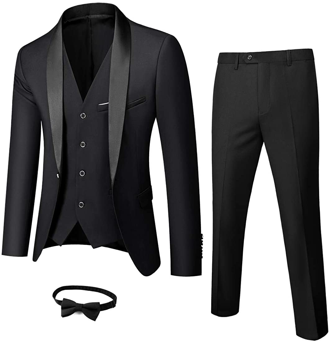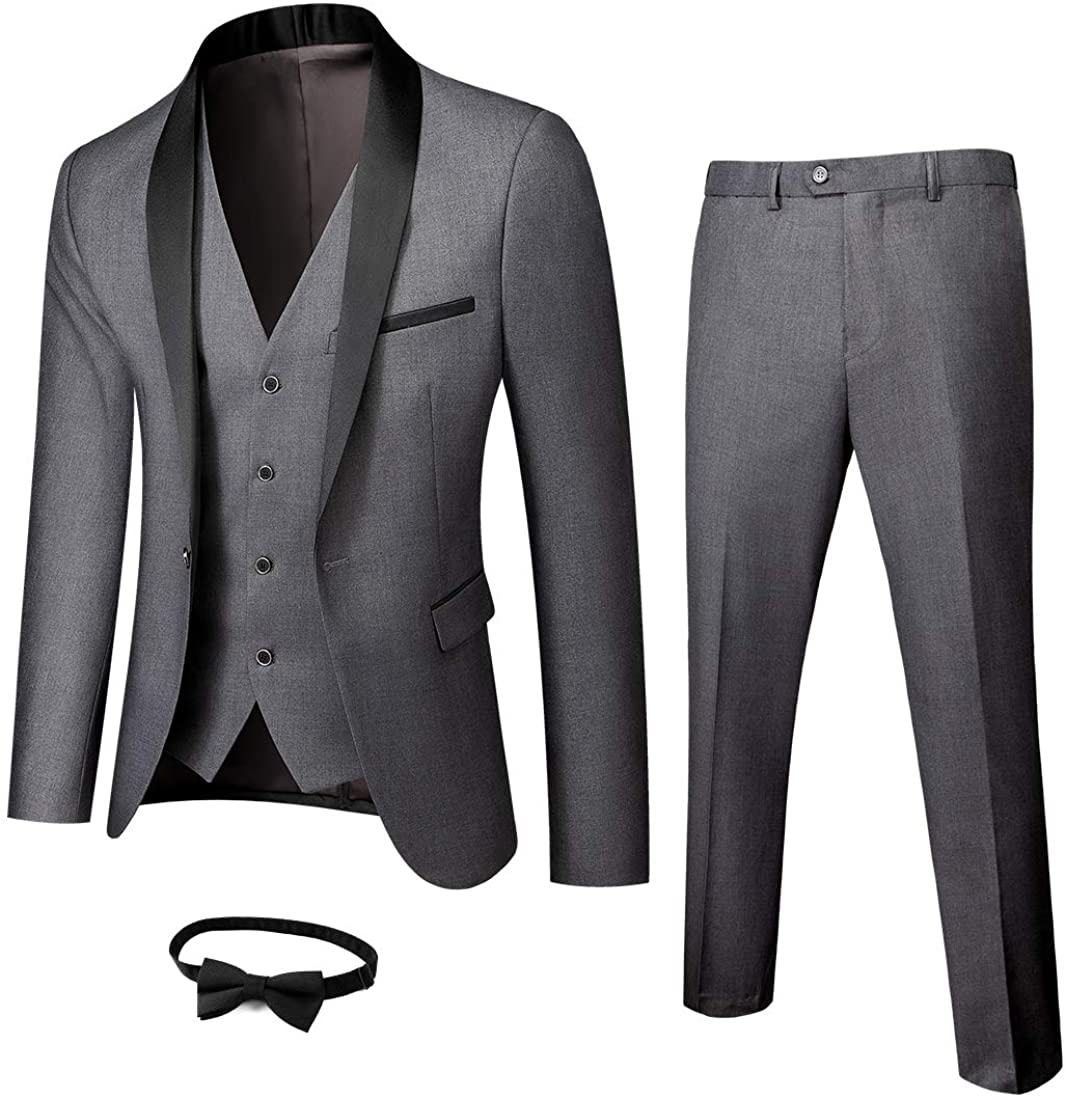 Mens Suit 3-Piece Suit Shawl Lapel One Button Tuxedo Slim Fit Premium Dinner Wedding Formal Occasion Jacket Vest Pants & Tie Set