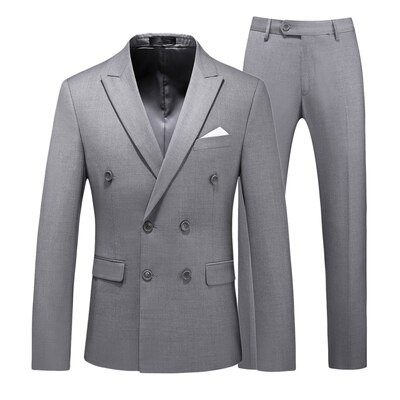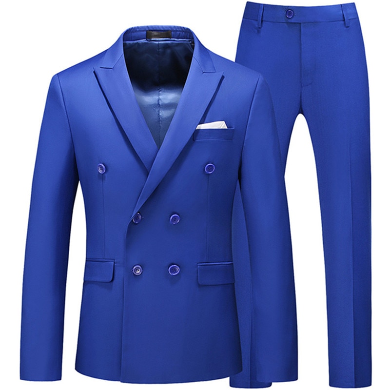 Men's Casual Boutique Business Double Breasted Suit Coat 2 Piece Set / Male Solid Color Slim Fit Blazers Jacket Pants Trousers