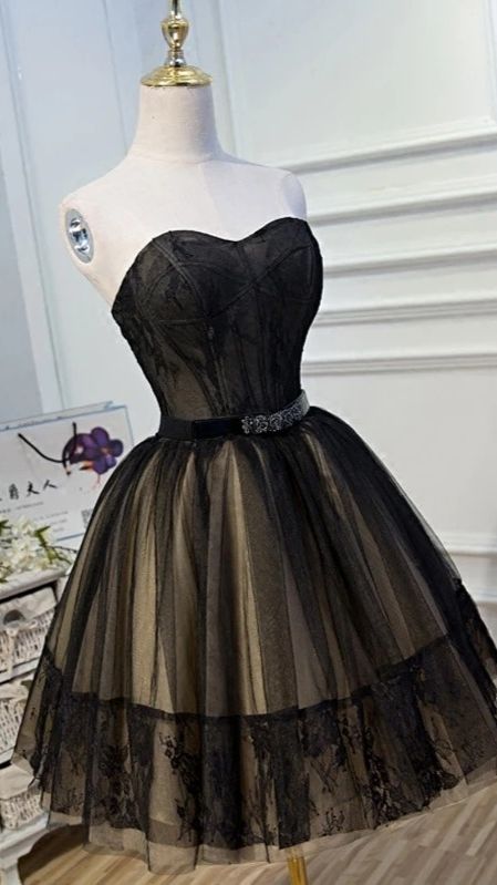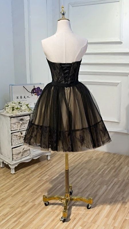 Black Lace Tulle Simple Homecoming Dresses Pretty Short Party Dresses