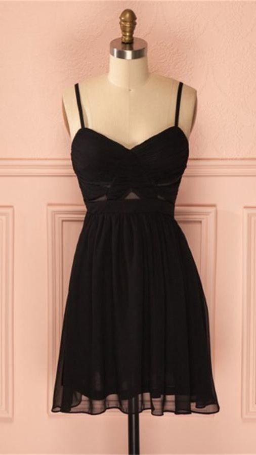 Spaghetti Straps Simple Cheap Black Chiffon Homecoming Dresses