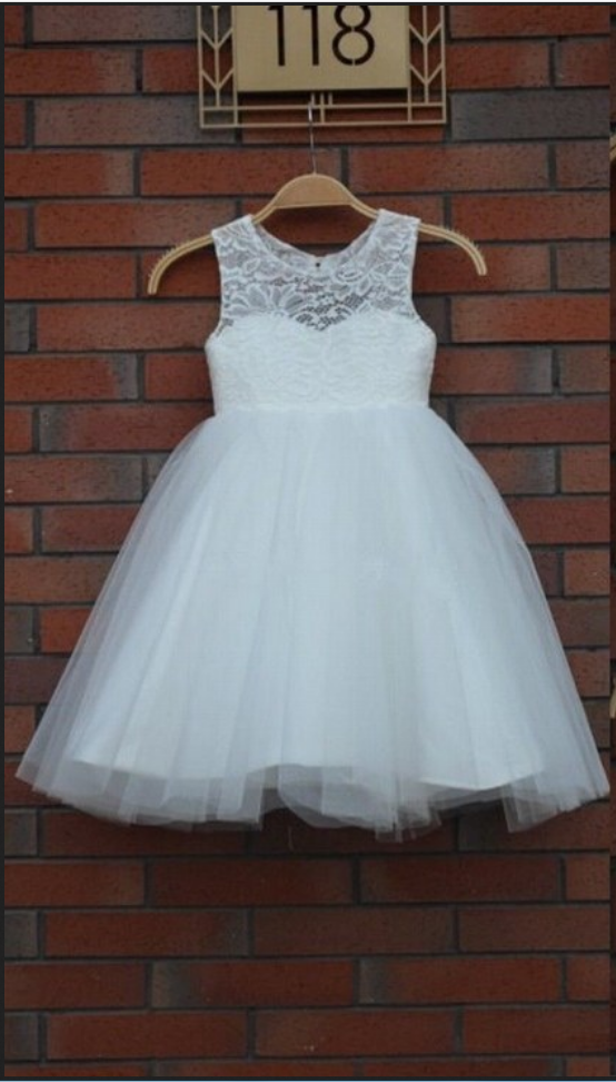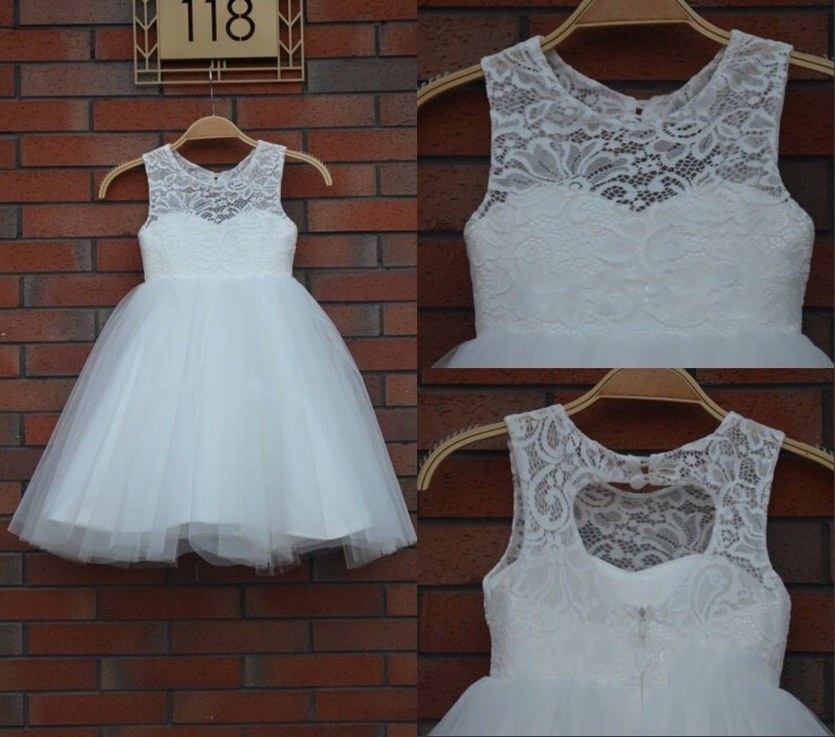 White Lace Cute Tulle Flower Girl Dress Kids Clothing