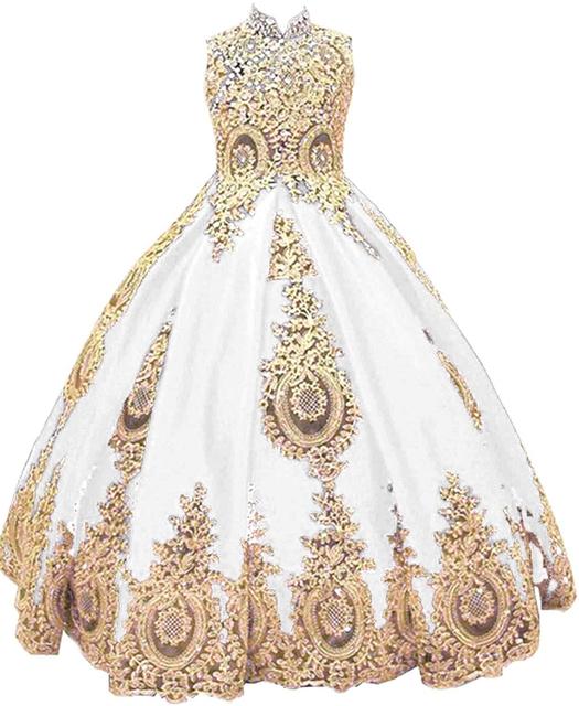 Luxurious Black And Gold Lace Flower Girls Dress High neck With Corset Back Crystal Designer Girl First Communion Pageant Gown