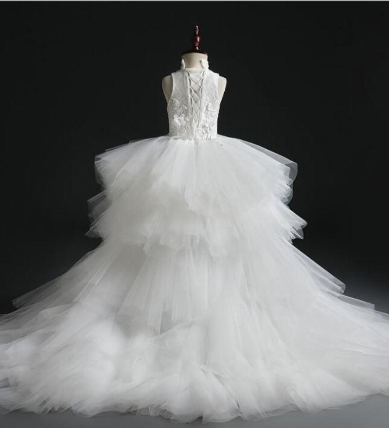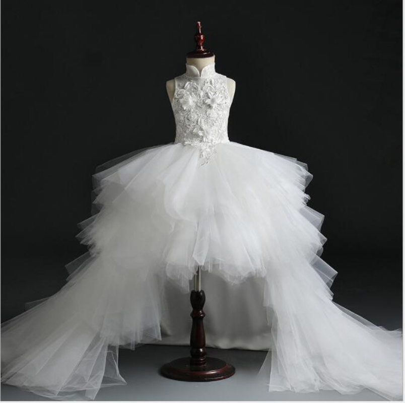 Flower Girl Dress First Communion Skirt Long Trailing White Lace Toddler Kids Pageant Gown Brithday Party And Weddings Party