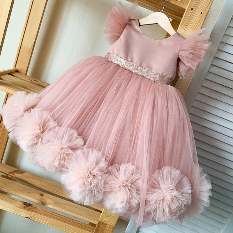 Pink Ruffles Flower Girls Dresses for Weddings Party Children Skirt Tiered Kids Photoshoot Baby Shower Gowns Hand Made