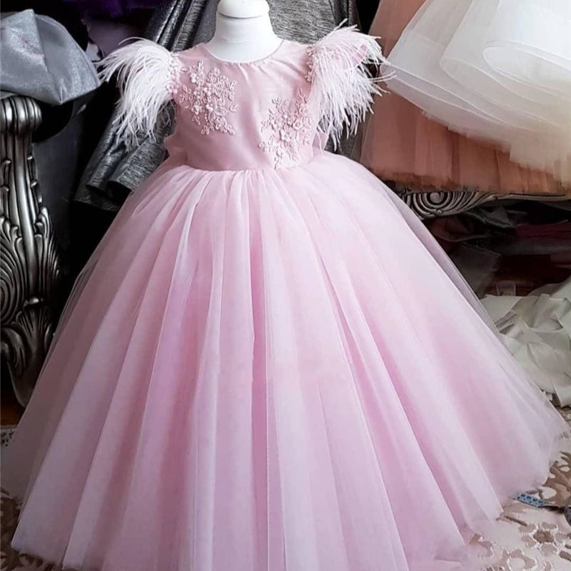 New Flower Girl Dress Birthday Party Princess Skirt Children Feathers Hand Made Custom Wedding Tutu Fluffy Clothing Vestidos