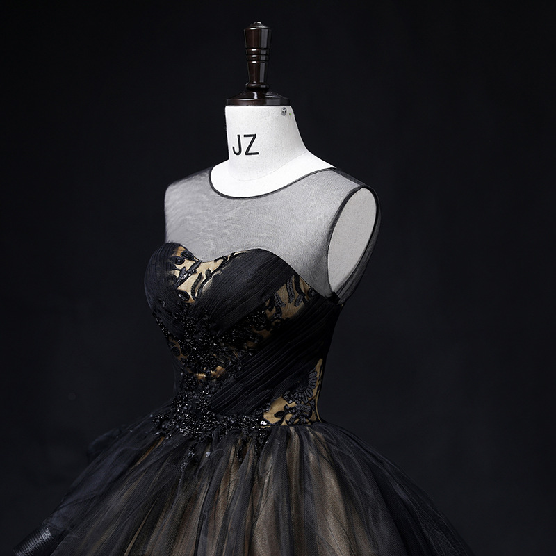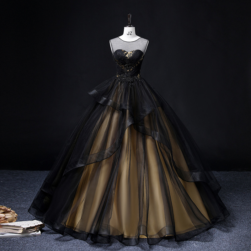 Black And Champagne Prom Dress Evening Dress Hand Made Custom