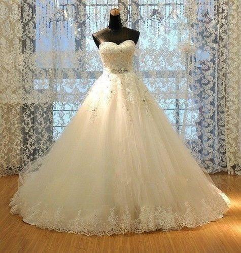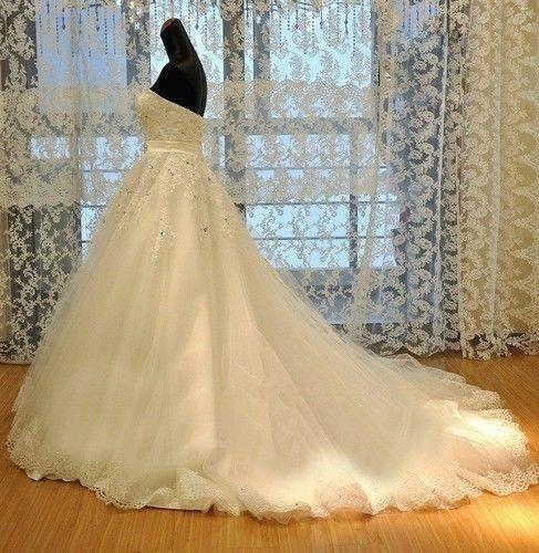 new elegant lace modest Sweetheart long train white/Ivory beading backless off shoulder Wedding Dress Bridal Gown Custom Plus Size