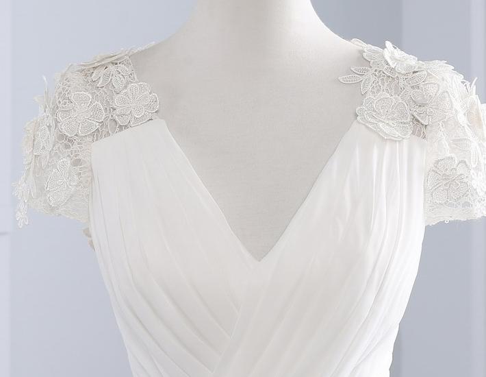 A line V neck Cap Sleeve Wedding Dress Beach Chiffon Pleating Bridal Gown Custom Plus Size Formal Occasion Applique Dress