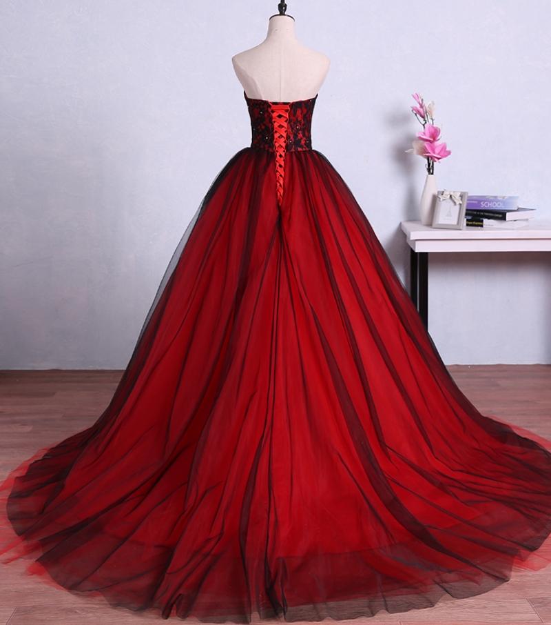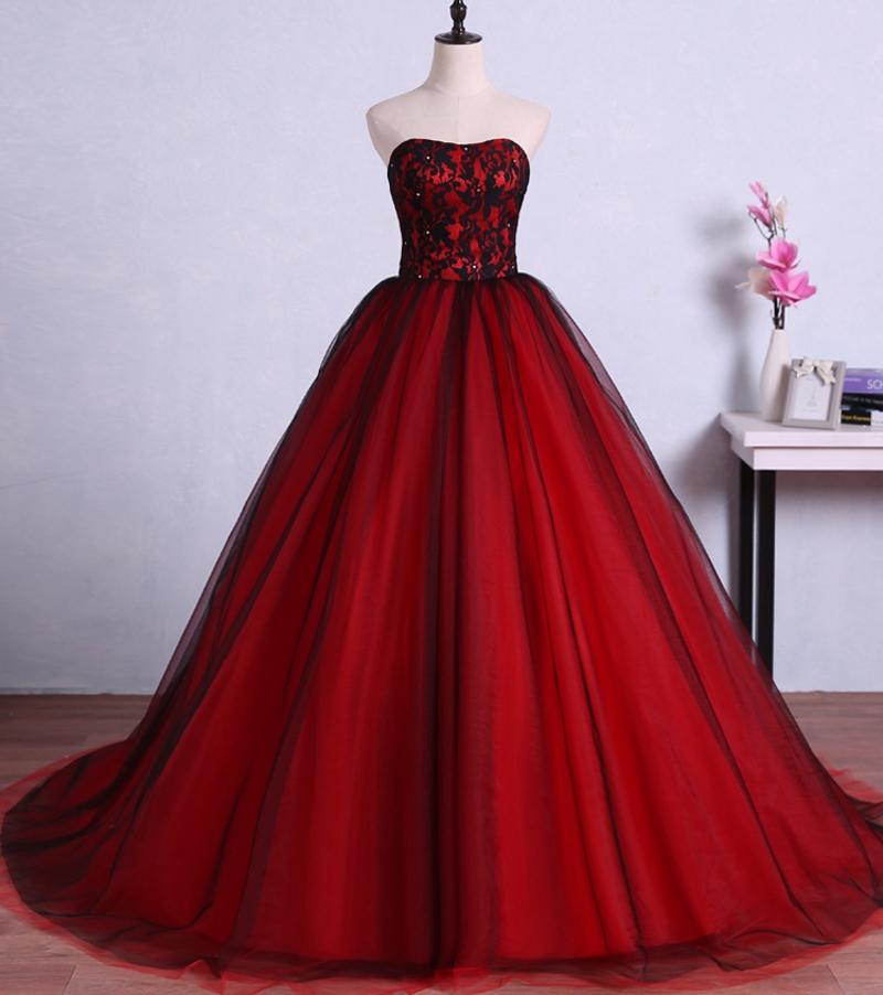 Red and Black Long Prom Dresses for Graduation Tulle Ball Gown Lace Formal Occasion Evening Gowns Dresses Custom Plus Size