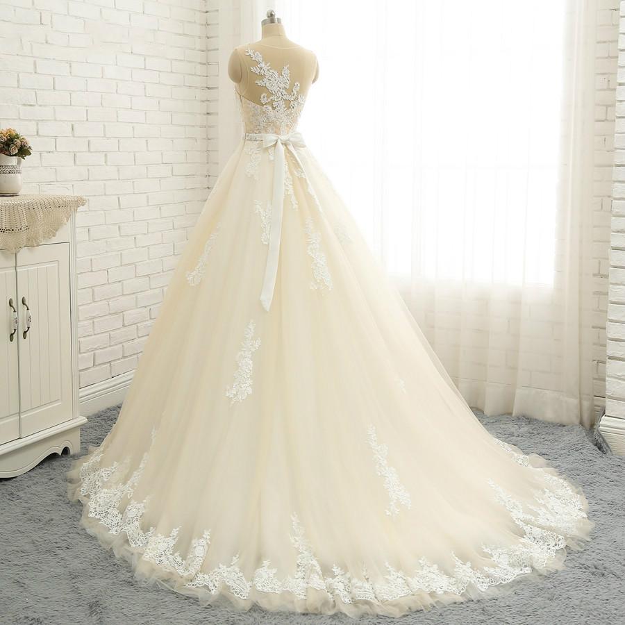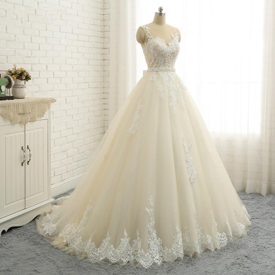 Sexy Illusion Back Embroidery Appliques Quality A line Wedding Dresses Dubai Sleeveless Plus Size Pearl Sash Arab Wedding Dress