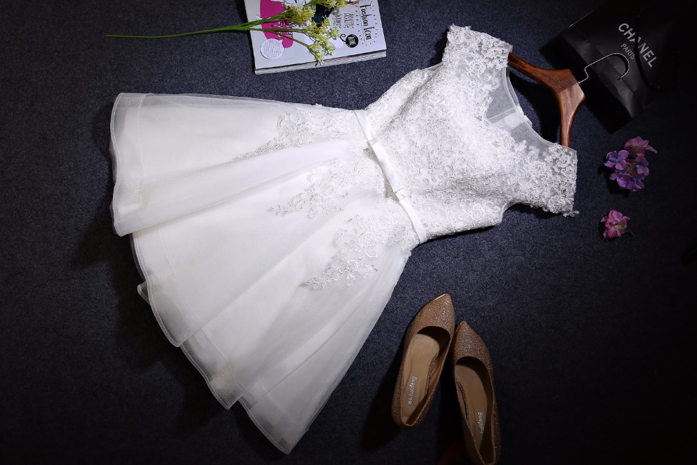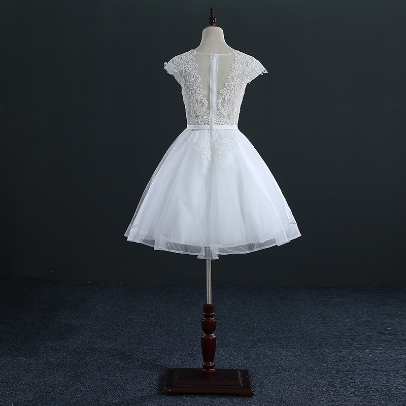 White Ivory Short Wedding Dress Lace Up Back Lace Applique Bridal Gown