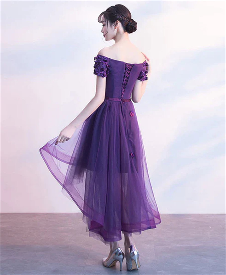 Purple High Low Cute Off Shoulder Homecoming Dress Lovely Formal Dress