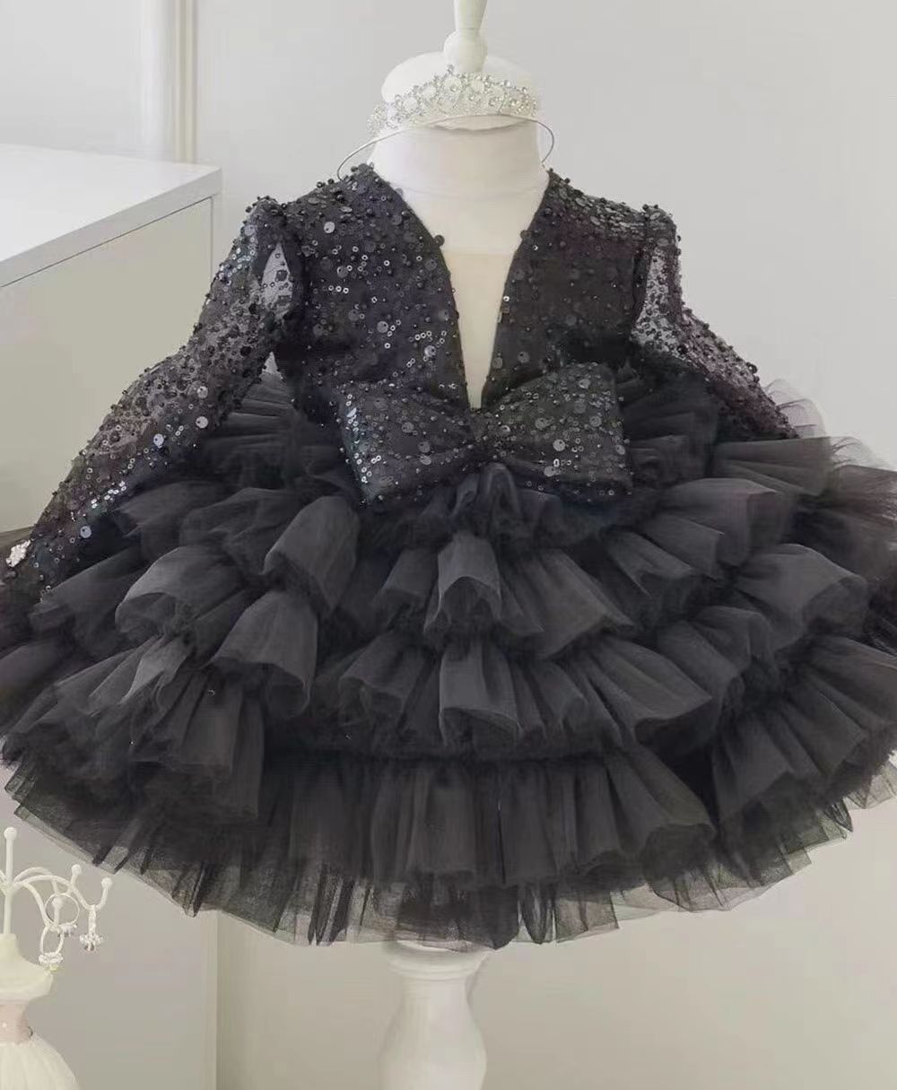 Black Flower Girl Dresses For Wedding Occasion Prom Party Christmas Kids Banquet Gowns Tiered Skirts Princess Clothing Hand Made