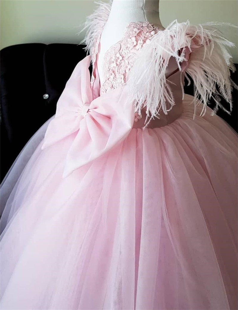 New Flower Girl Dress Birthday Party Princess Skirt Children Feathers Hand Made Custom Wedding Tutu Fluffy Clothing Vestidos