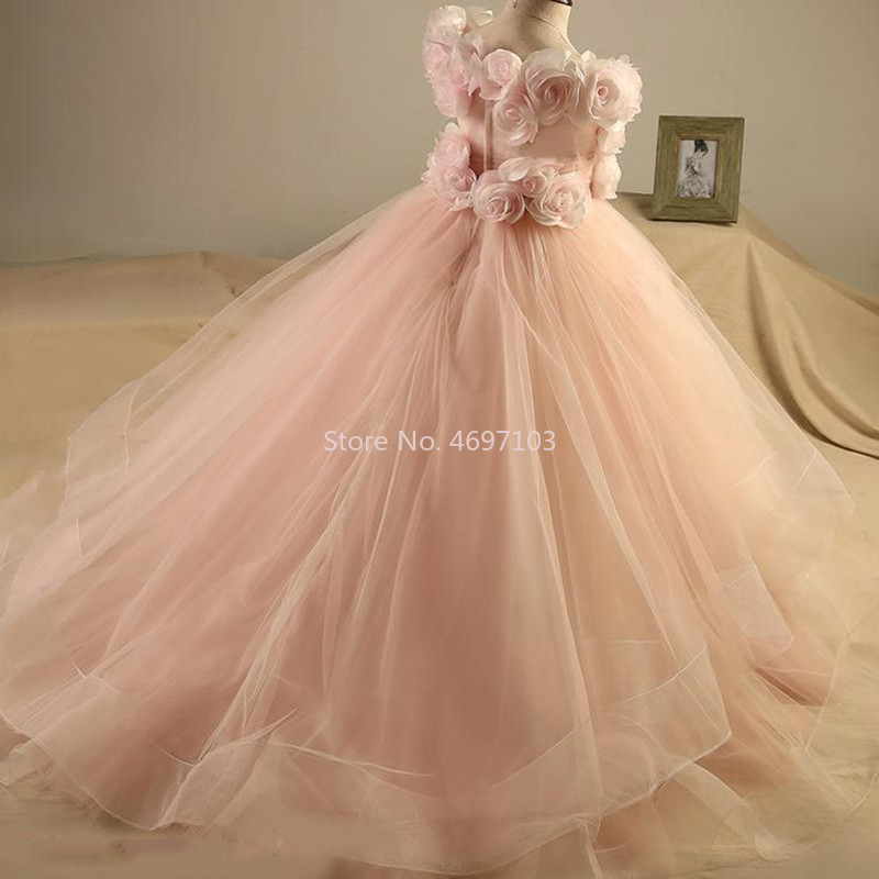 Lovely Pink Handmade Flowers Girl Dress for Wedding Real Photo Applique Princess Pageant Kids Birthday Ball Gowns