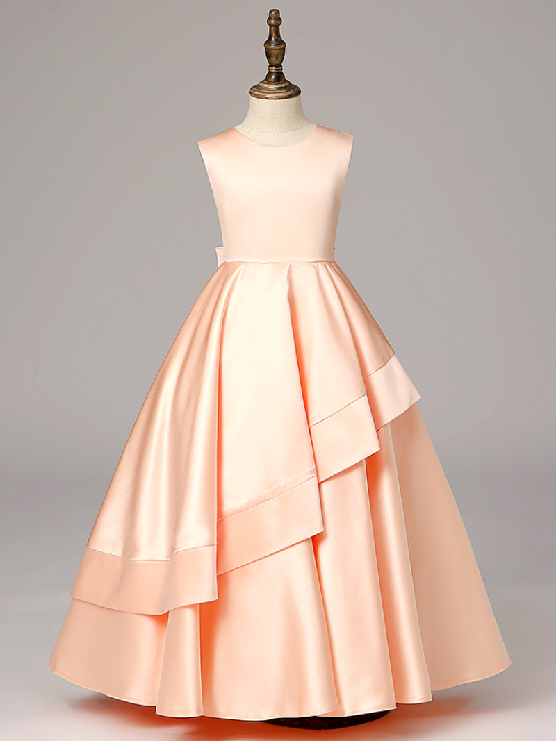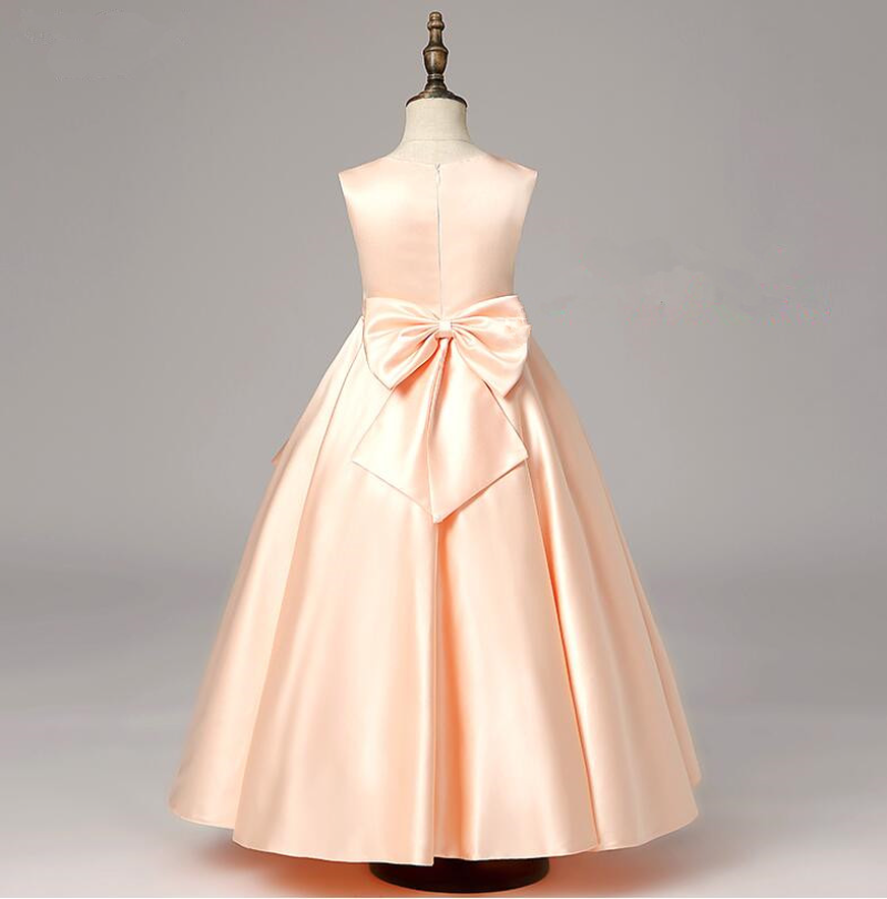 New Satin Flower Girls Dress for Wedding Evening Children Princess Party Pageant Long Gown Kids Skirt Formal Communion Clothes