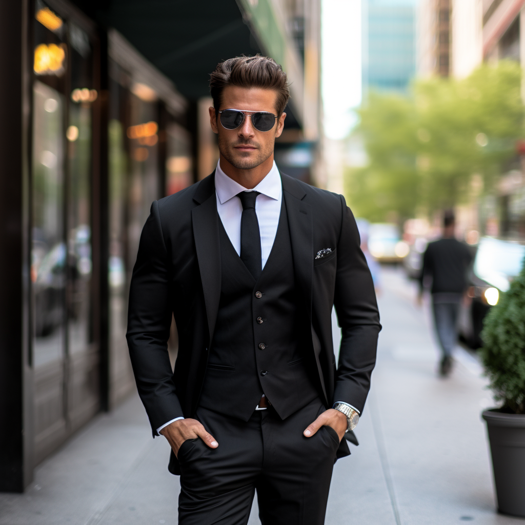 Black Men's Suit 3 Piece Set Blazers Vest Pants Classic Business Gentleman Formal Groom For Wedding Occasion
