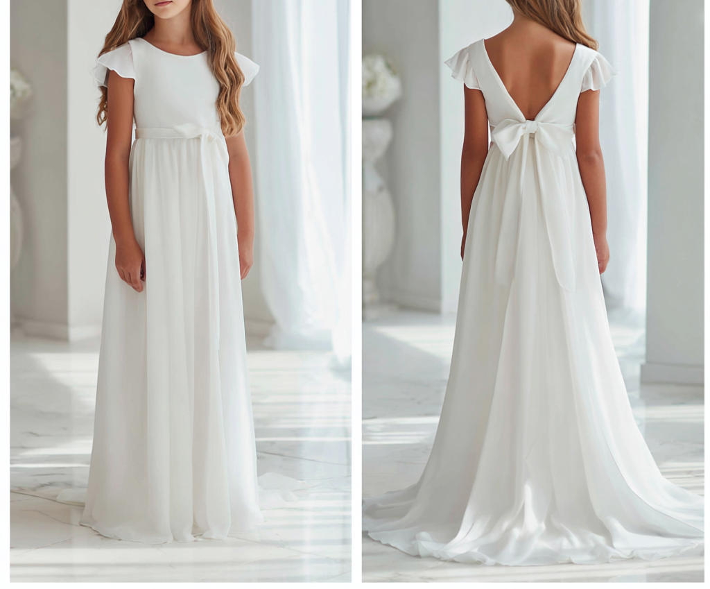 White Chiffon Flower Girl Dress Brithday Party Kids Skirt Princess Clothing W1.18